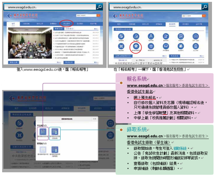 www.eeagd.edu.cn>報名報考>香港免試生招生> 香港免試生報名