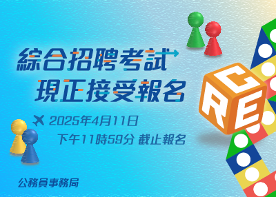 | 查詢 : 電話: (852) 2537 6429 / 電郵:csbcseu@csb.gov.hk 請瀏覽公務員事務局網(www.csb.gov.hk/chi/cre.html)查閱有關詳情。 |