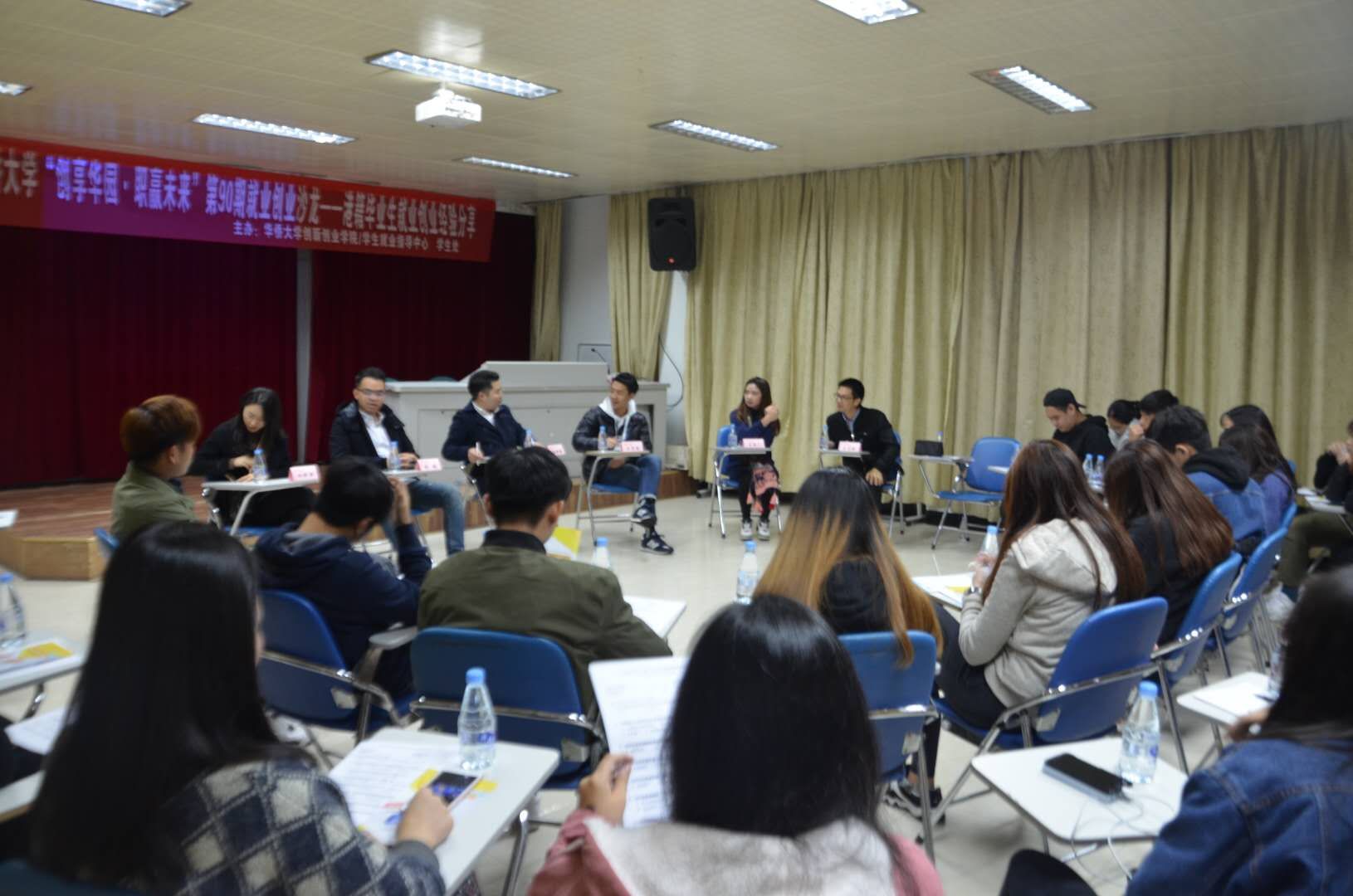 3位主講嘉賓和30位華僑大學的在校港生分享了自己在學習、求職、工作等階段的經歷,並跟大家分析香港就業前景及現場互動答疑解惑。