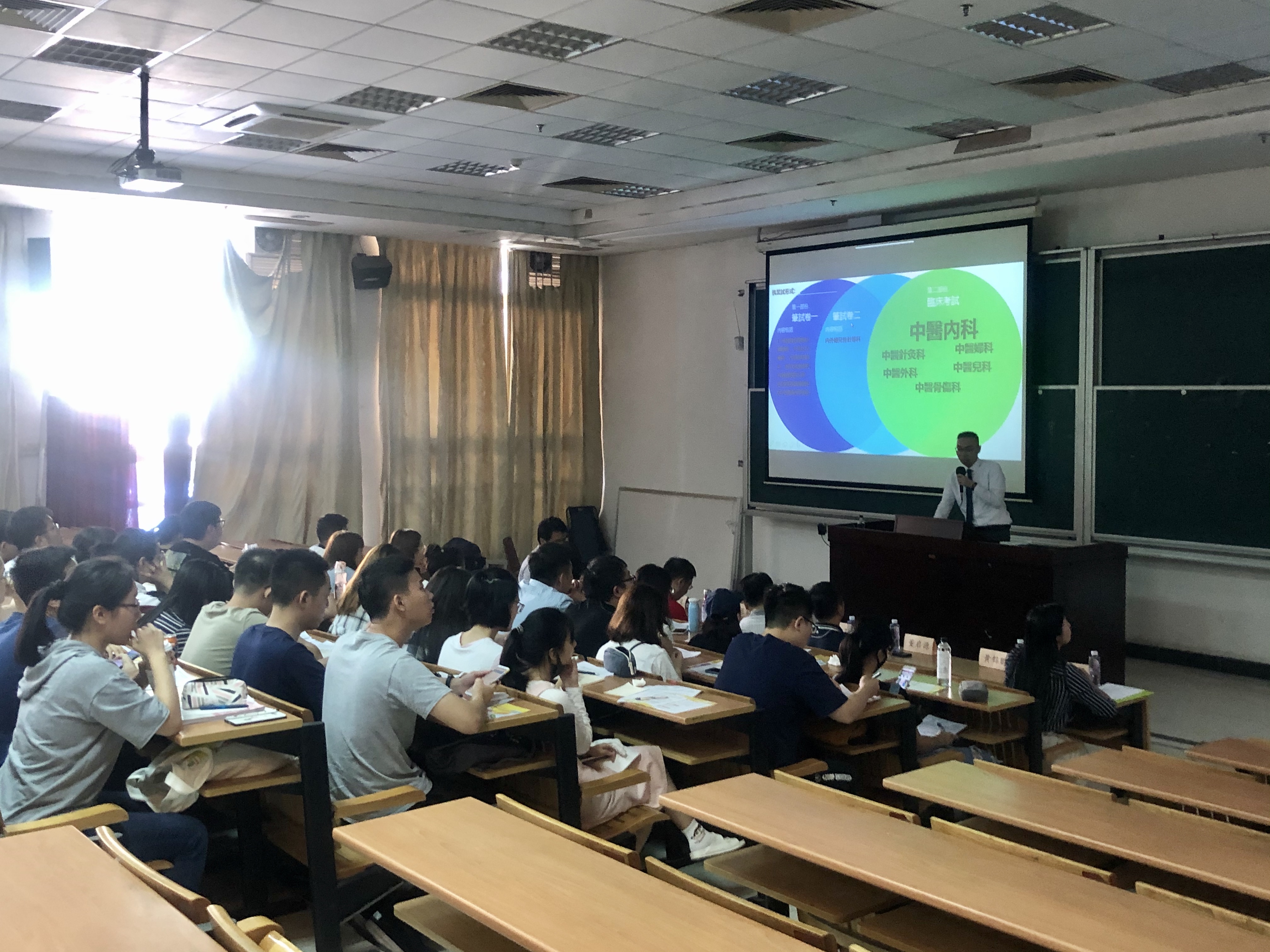 李犖雋學長首先發言,他耐心地講解了香港有限制註冊中醫、表列中醫及註冊中醫的區別和執業範疇。然後詳細地講解了香港中醫執業考試的報考程序及考試科目等;最後給在讀的同學們推薦了三本書籍學習。