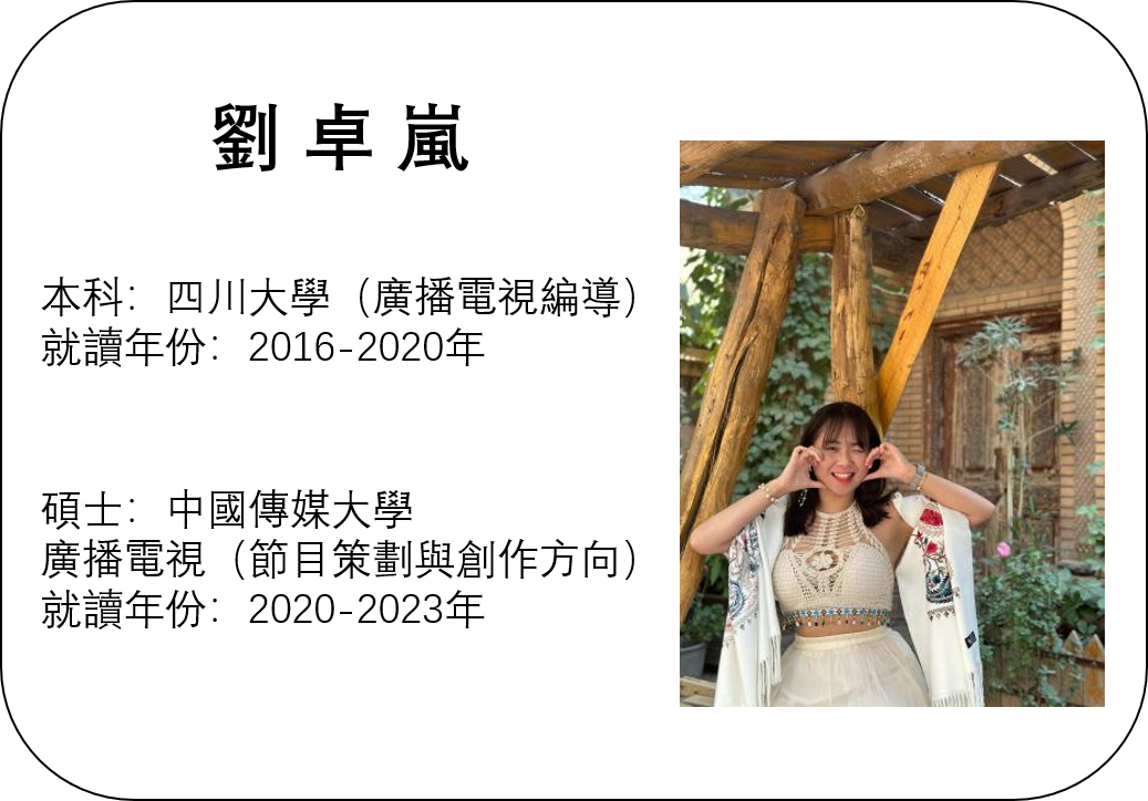我叫劉卓嵐,是一個土生土長的香港女孩。我喜歡文化藝術,更喜歡去各地體驗不同的風土人情。我就讀於香港東華三院呂潤財紀念中學。通過香港中學文憑考試免試招生計畫,我瞭解到內地居然有許多古色古香的大學,於是我不由得被深深吸引住。再則,在內地上大學可以享有實惠價格的住宿費、學費、消費,和香港的高消費有鮮明對比,最重要的是,內地高校學科豐富,不同於香港局限於四大熱門類學科,競爭激烈。於是,我在準備投考本科的時候,報考了四川大學藝術學院廣播電視編導系。