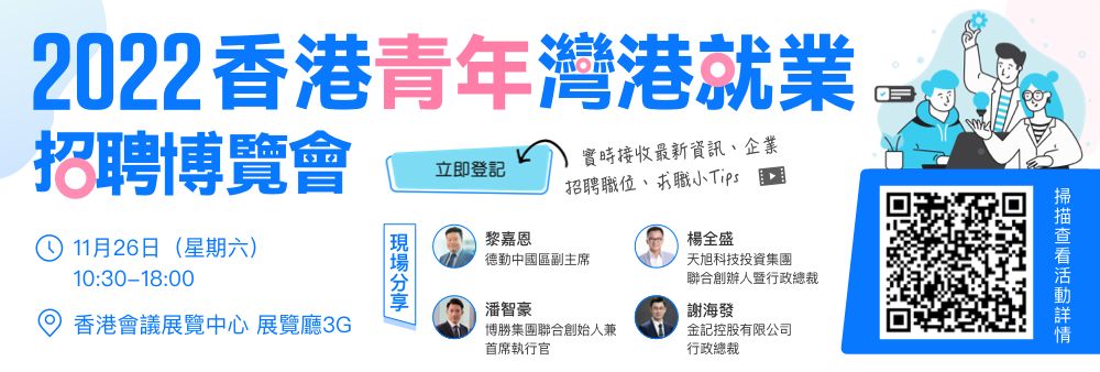 「2022香港青年灣港就業招聘博覽會」將於11月26日於灣仔會展舉行!
